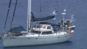 The yacht Farr Flyer which suffered engine problems and was allowed to moor at Alofi…