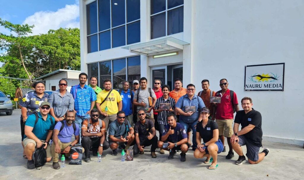 BCN Technical Manager-Jale Lomaloma (standing eighth from the left In a grey T-shirt) alongside other regional participants in Nauru (Image credit: Vaimo’o’ia Ripley ABC)