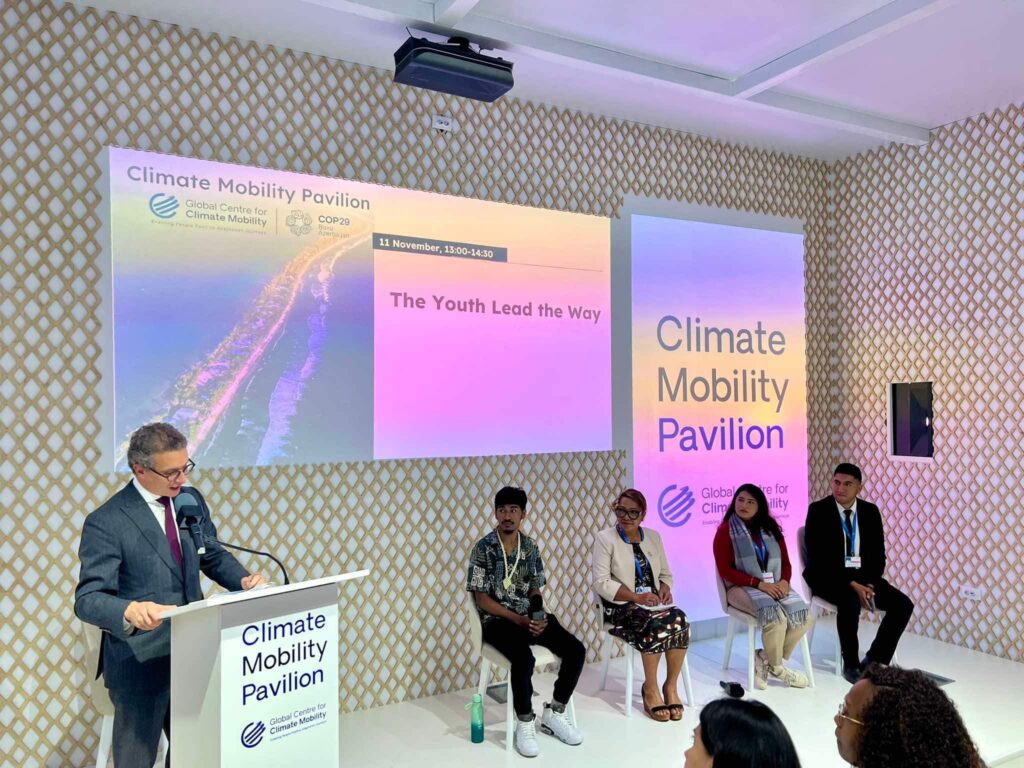 Following this, Hin Ainu’u was invited to speak at the Climate Mobility Pavilion for “Youth Lead the Way” in Building Resilience and Sustaining a Dream.
