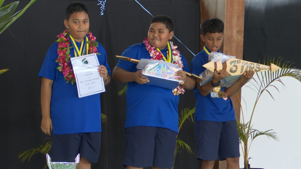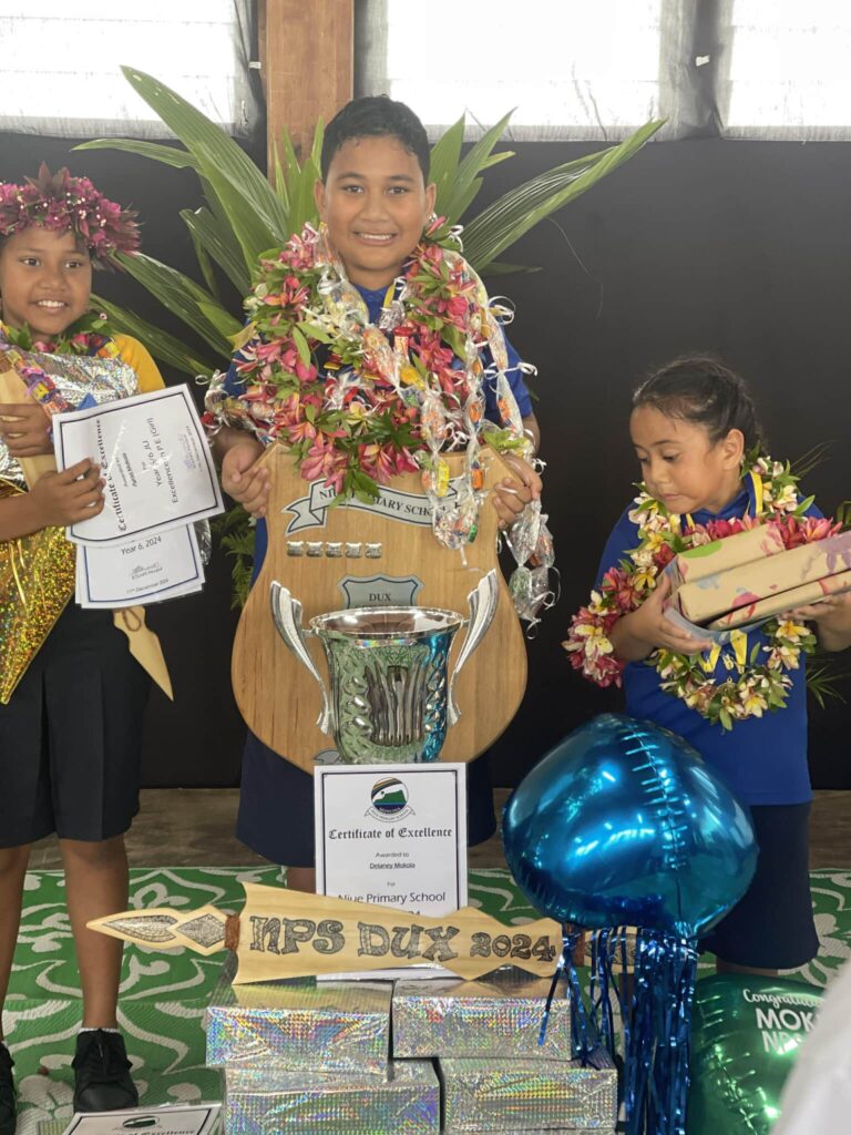 The boys dominated this year at the Niue Primary school prize giving with the top three academic placements. Delaney Mokoia from Alofi was awarded the Dux of Niue Primary school at their prize giving ceremony yesterday. Titania Lupeiki from Hakupu in second place and also from Hakupu, Terry Tatui in third place.