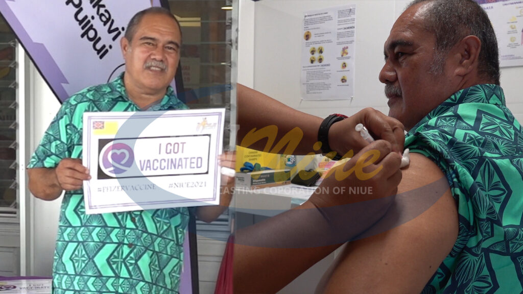 The Minister of Health Sauni Tongatule followed by the NZ deputy High Commissioner Nigel were the first people to receive the Pfizer vaccine this afternoon at the Niuefoou hospital.