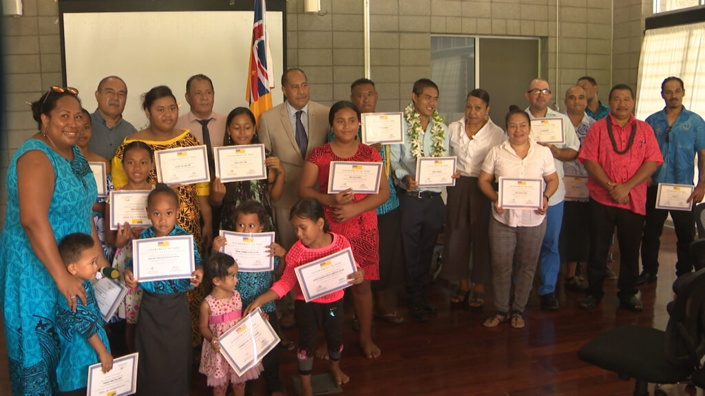 Premier Tagelagi and his full Cabinet of ministers were at the ceremony. Minister of Immigration Crossley Tatui welcomed the new permanent residents stating that “The ceremony today shows that you have contributed a lot to our cultural, political, economic, social and technological growth and achievements. Your hard work, dedication and commitment over the years has earned our trust and confidence, to count you as our own brothers and sisters, sons and daughters of Niue.”