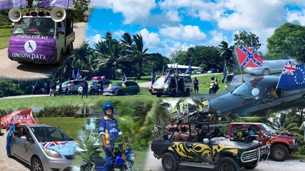 The takai time is a revelry of decorated vehicles with passengers dancing and singing, loud music blaring, and the incessant beeping of horns. Flags are a big thing on takai with the Niue flag flying proudly with village flags the latest rave. This is also the time when other nations’ flags like the Tongan, Samoan, Fijian, NZ, and Australian flags fly high and strange enough or perhaps not even a couple of the American confederate flags appear on takai as well.