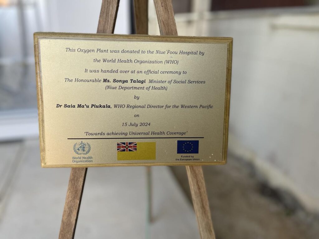 World Health Organization Regional Director for the Western Pacific –Dr Saia Ma’u Piukala handed over the commissioning of the new Oxygen Plant to the Niue Foou Hospital on Monday.
